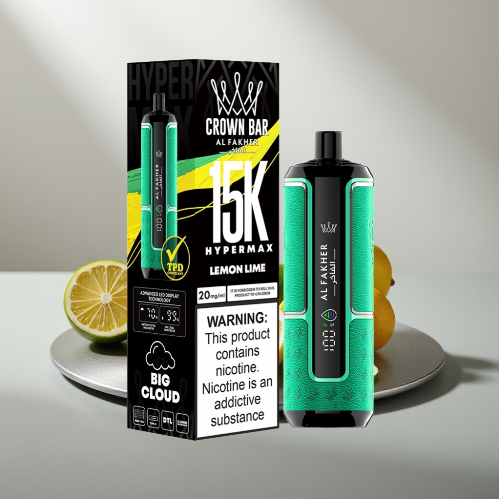 ה-Al Fakher Crown Bar 15K Hypermax הוא הבחירה המובילה למחפשי איכות, נוחות וטעם מעולה. זמין במגוון טעמי פירות ומנטול מרעננים.