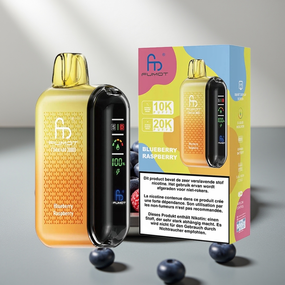 Fumot Tornado 20000 Puffs רשת כפולה 20 מ"ל 850mAh תצוגה חכמה זרימת אוויר 2% אוכמניות פטל